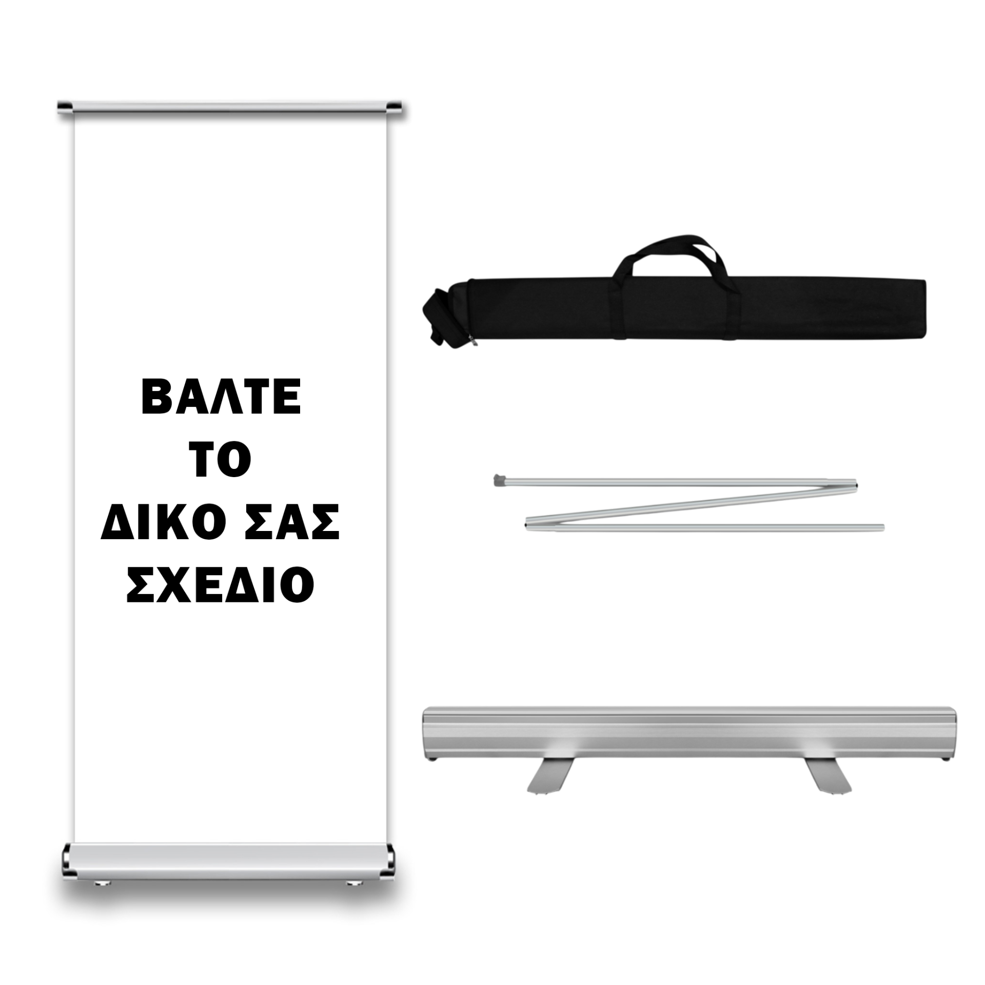Ανθεκτική κατασκευή από αλουμίνιο που η εκτύπωση τυλίγεται στο εσωτερικό του σταντ για προστασία και εύκολη μεταφορά.
